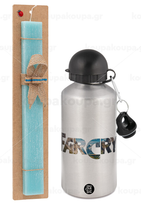 Farcry, Πασχαλινή Λαμπάδα με παγούρι μεταλλικό Ασημένιο αλουμινίου (500ml) & κερί αρωματικό πλακέ (30cm) (ΤΙΡΚΟΥΑΖ)