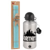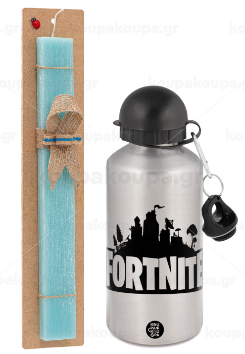 Fortnite, Πασχαλινή Λαμπάδα με παγούρι μεταλλικό Ασημένιο αλουμινίου (500ml) & κερί αρωματικό πλακέ (30cm) (ΤΙΡΚΟΥΑΖ)