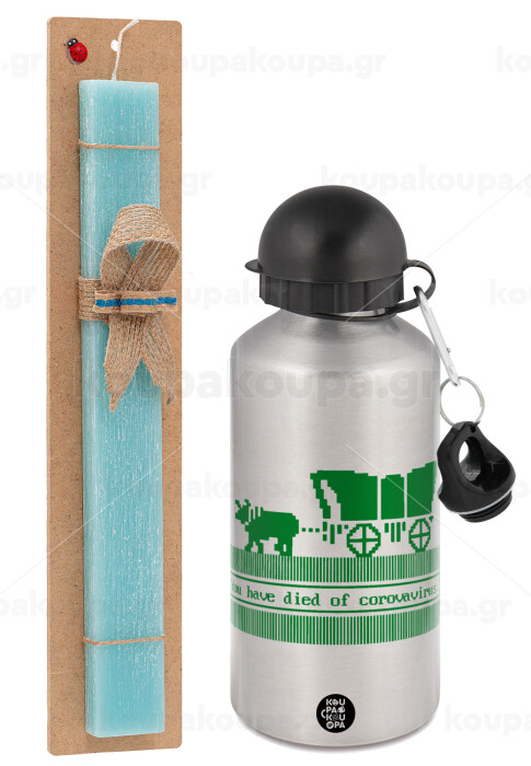 Oregon Trail, cov... edition, Πασχαλινή Λαμπάδα με παγούρι μεταλλικό Ασημένιο αλουμινίου (500ml) & κερί αρωματικό πλακέ (30cm) (ΤΙΡΚΟΥΑΖ)