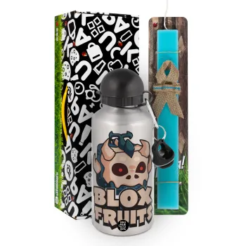 Roblox Blox Fruits, Πασχαλινή Λαμπάδα με παγούρι μεταλλικό Ασημένιο αλουμινίου (500ml) & κερί αρωματικό πλακέ (30cm) (ΤΙΡΚΟΥΑΖ)