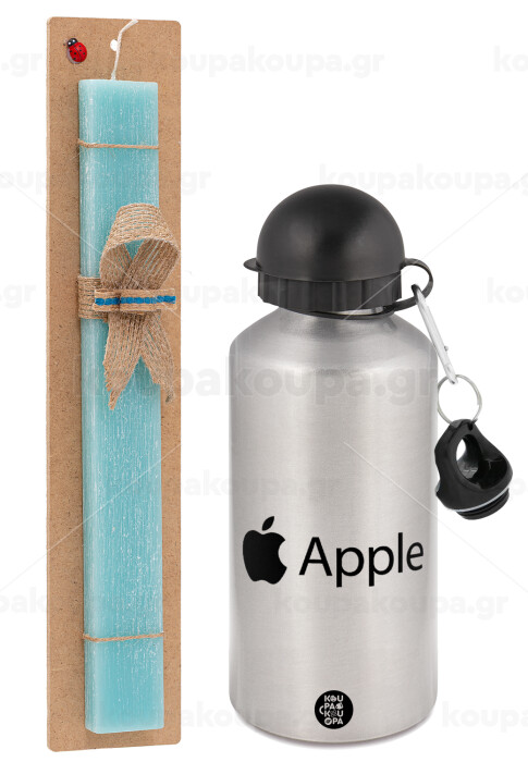 apple, Πασχαλινή Λαμπάδα με παγούρι μεταλλικό Ασημένιο αλουμινίου (500ml) & κερί αρωματικό πλακέ (30cm) (ΤΙΡΚΟΥΑΖ)