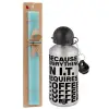 Because everything in I.T. requires coffee, Πασχαλινή Λαμπάδα με παγούρι μεταλλικό Ασημένιο αλουμινίου (500ml) & κερί αρωματικό πλακέ (30cm) (ΤΙΡΚΟΥΑΖ)