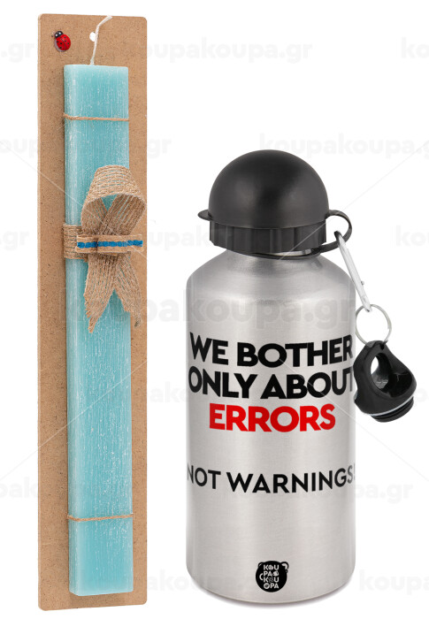 We bother only about errors, not warnings, Πασχαλινή Λαμπάδα με παγούρι μεταλλικό Ασημένιο αλουμινίου (500ml) & κερί αρωματικό πλακέ (30cm) (ΤΙΡΚΟΥΑΖ)