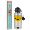 Smile Mug, Πασχαλινή Λαμπάδα με παγούρι μεταλλικό Ασημένιο αλουμινίου (500ml) & κερί αρωματικό πλακέ (30cm) (ΤΙΡΚΟΥΑΖ)