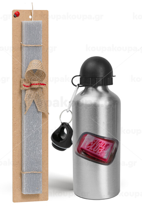 Fight Club, Πασχαλινή Λαμπάδα με παγούρι μεταλλικό Ασημένιο αλουμινίου (500ml) & κερί αρωματικό πλακέ (30cm) (ΓΚΡΙ)