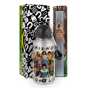 Friends Dont Lie, Stranger Things, Πασχαλινή Λαμπάδα με παγούρι μεταλλικό Ασημένιο αλουμινίου (500ml) & κερί αρωματικό πλακέ (30cm) (ΓΚΡΙ)