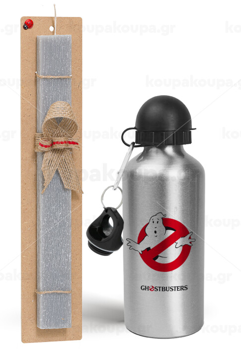 Ghostbusters, Πασχαλινή Λαμπάδα με παγούρι μεταλλικό Ασημένιο αλουμινίου (500ml) & κερί αρωματικό πλακέ (30cm) (ΓΚΡΙ)