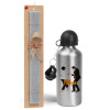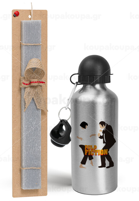 Pulp Fiction dancing, Πασχαλινή Λαμπάδα με παγούρι μεταλλικό Ασημένιο αλουμινίου (500ml) & κερί αρωματικό πλακέ (30cm) (ΓΚΡΙ)