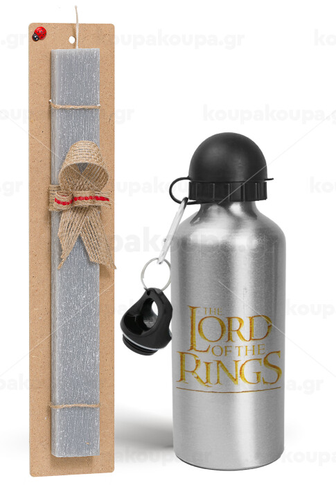 The Lord of the Rings, Πασχαλινή Λαμπάδα με παγούρι μεταλλικό Ασημένιο αλουμινίου (500ml) & κερί αρωματικό πλακέ (30cm) (ΓΚΡΙ)