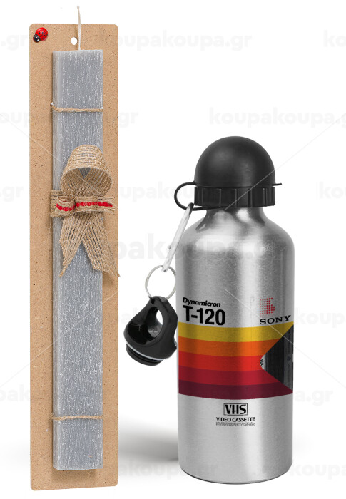 VHS sony dynamicron T-120, Πασχαλινή Λαμπάδα με παγούρι μεταλλικό Ασημένιο αλουμινίου (500ml) & κερί αρωματικό πλακέ (30cm) (ΓΚΡΙ)