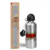 BOOM!!!, Πασχαλινή Λαμπάδα με παγούρι μεταλλικό Ασημένιο αλουμινίου (500ml) & κερί αρωματικό πλακέ (30cm) (ΓΚΡΙ)