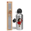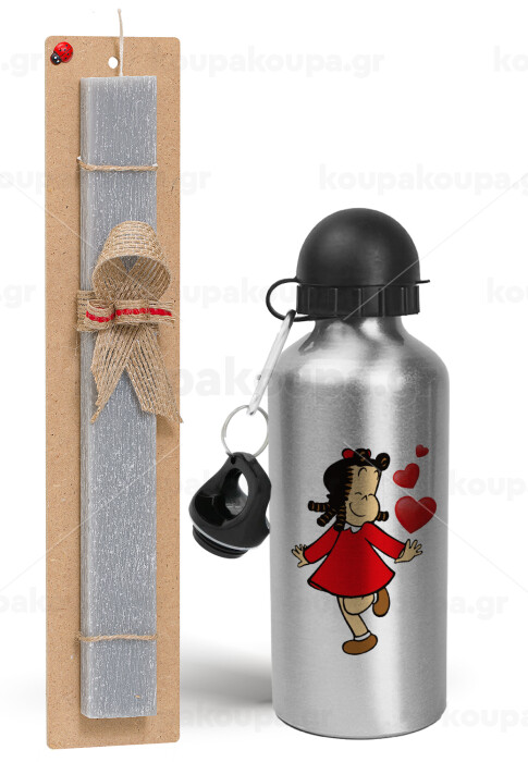 Η μικρή Λουλού, Πασχαλινή Λαμπάδα με παγούρι μεταλλικό Ασημένιο αλουμινίου (500ml) & κερί αρωματικό πλακέ (30cm) (ΓΚΡΙ)