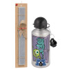 Monster inc, Πασχαλινή Λαμπάδα με παγούρι μεταλλικό Ασημένιο αλουμινίου (500ml) & κερί αρωματικό πλακέ (30cm) (ΓΚΡΙ)