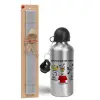 Snoopy what makes my happy, Πασχαλινή Λαμπάδα με παγούρι μεταλλικό Ασημένιο αλουμινίου (500ml) & κερί αρωματικό πλακέ (30cm) (ΓΚΡΙ)