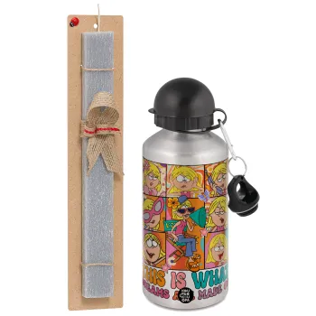 This Is What Dreams Are Made Of Lizzie Mcguire, Πασχαλινή Λαμπάδα με παγούρι μεταλλικό Ασημένιο αλουμινίου (500ml) & κερί αρωματικό πλακέ (30cm) (ΓΚΡΙ)