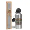 Outerbanks paradise on earth, Πασχαλινή Λαμπάδα με παγούρι μεταλλικό Ασημένιο αλουμινίου (500ml) & κερί αρωματικό πλακέ (30cm) (ΓΚΡΙ)