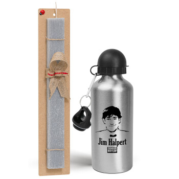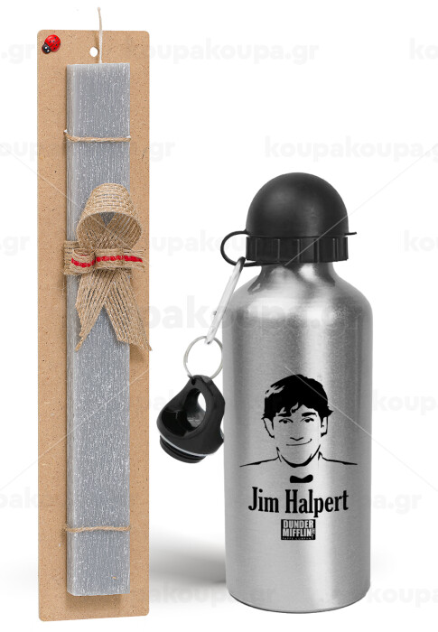 The office Jim Halpert, Πασχαλινή Λαμπάδα με παγούρι μεταλλικό Ασημένιο αλουμινίου (500ml) & κερί αρωματικό πλακέ (30cm) (ΓΚΡΙ)