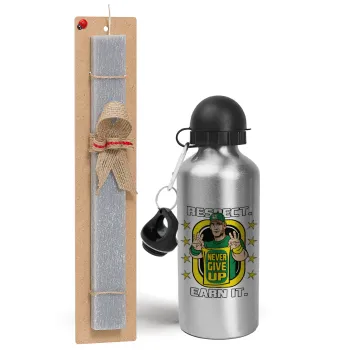 John Cena, Πασχαλινή Λαμπάδα με παγούρι μεταλλικό Ασημένιο αλουμινίου (500ml) & κερί αρωματικό πλακέ (30cm) (ΓΚΡΙ)