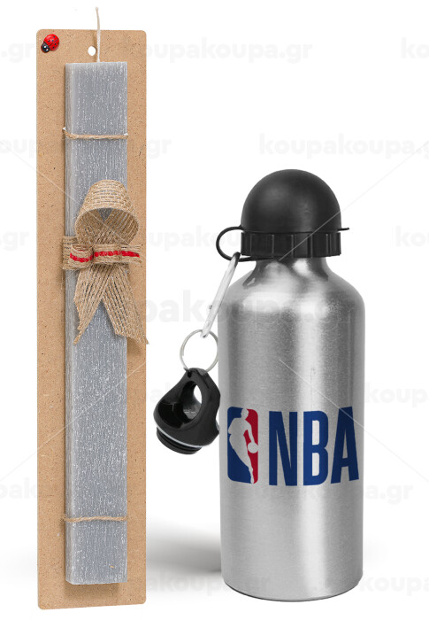 NBA Classic, Πασχαλινή Λαμπάδα με παγούρι μεταλλικό Ασημένιο αλουμινίου (500ml) & κερί αρωματικό πλακέ (30cm) (ΓΚΡΙ)