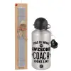 This is what an awesome COACH looks like!, Πασχαλινή Λαμπάδα με παγούρι μεταλλικό Ασημένιο αλουμινίου (500ml) & κερί αρωματικό πλακέ (30cm) (ΓΚΡΙ)