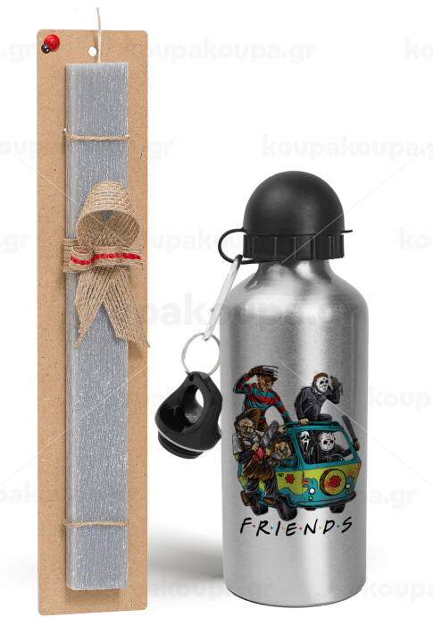 Halloween Friends Scooby Doo, Πασχαλινή Λαμπάδα με παγούρι μεταλλικό Ασημένιο αλουμινίου (500ml) & κερί αρωματικό πλακέ (30cm) (ΓΚΡΙ)