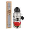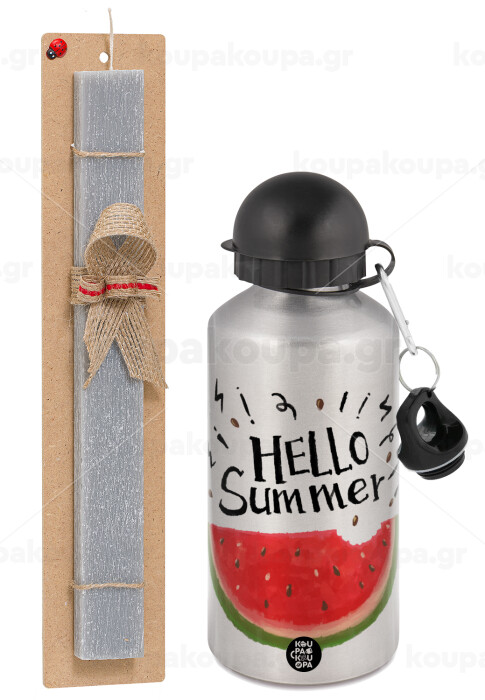 Summer Watermelon, Πασχαλινή Λαμπάδα με παγούρι μεταλλικό Ασημένιο αλουμινίου (500ml) & κερί αρωματικό πλακέ (30cm) (ΓΚΡΙ)