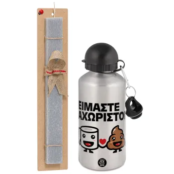 Είμαστε αχώριστοι, Πασχαλινή Λαμπάδα με παγούρι μεταλλικό Ασημένιο αλουμινίου (500ml) & κερί αρωματικό πλακέ (30cm) (ΓΚΡΙ)