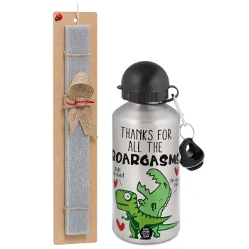 Thanks for all the ROARGASMS, Πασχαλινή Λαμπάδα με παγούρι μεταλλικό Ασημένιο αλουμινίου (500ml) & κερί αρωματικό πλακέ (30cm) (ΓΚΡΙ)