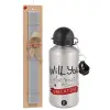 Will you be my Valentine???, Πασχαλινή Λαμπάδα με παγούρι μεταλλικό Ασημένιο αλουμινίου (500ml) & κερί αρωματικό πλακέ (30cm) (ΓΚΡΙ)