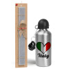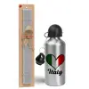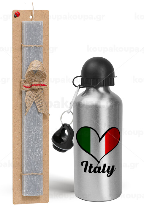 Italy flag, Πασχαλινή Λαμπάδα με παγούρι μεταλλικό Ασημένιο αλουμινίου (500ml) & κερί αρωματικό πλακέ (30cm) (ΓΚΡΙ)