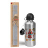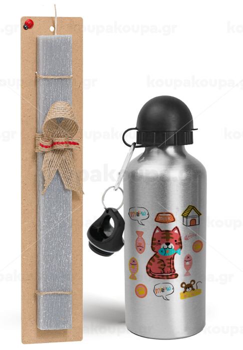 Cats and Fishes, Πασχαλινή Λαμπάδα με παγούρι μεταλλικό Ασημένιο αλουμινίου (500ml) & κερί αρωματικό πλακέ (30cm) (ΓΚΡΙ)