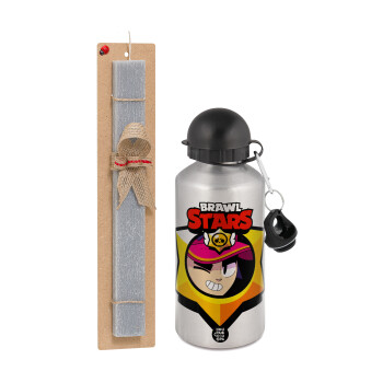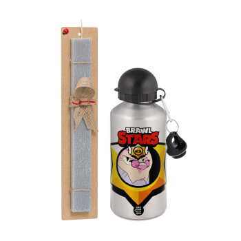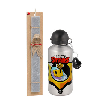 Πασχαλινή Λαμπάδα με παγούρι μεταλλικό Ασημένιο αλουμινίου (500ml) & κερί αρωματικό πλακέ (30cm) (ΓΚΡΙ) με θέμα Gaming