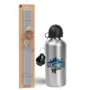 Fortnite with gun με το όνομα σου, Πασχαλινή Λαμπάδα με παγούρι μεταλλικό Ασημένιο αλουμινίου (500ml) & κερί αρωματικό πλακέ (30cm) (ΓΚΡΙ)