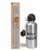 Believe in your self, Πασχαλινή Λαμπάδα με παγούρι μεταλλικό Ασημένιο αλουμινίου (500ml) & κερί αρωματικό πλακέ (30cm) (ΓΚΡΙ)