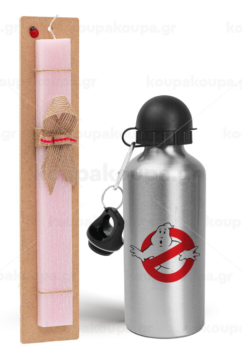 The Ghostbusters, Πασχαλινή Λαμπάδα με παγούρι μεταλλικό Ασημένιο αλουμινίου (500ml) & κερί αρωματικό πλακέ (30cm) (ΡΟΖ)
