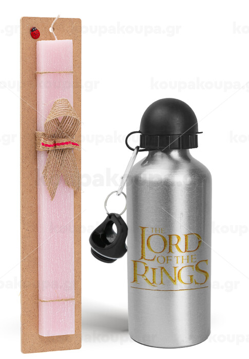 The Lord of the Rings, Πασχαλινή Λαμπάδα με παγούρι μεταλλικό Ασημένιο αλουμινίου (500ml) & κερί αρωματικό πλακέ (30cm) (ΡΟΖ)
