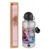 Έλσα & Άννα, Πασχαλινή Λαμπάδα με παγούρι μεταλλικό Ασημένιο αλουμινίου (500ml) & κερί αρωματικό πλακέ (30cm) (ΡΟΖ)
