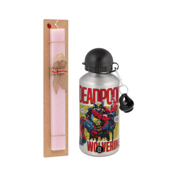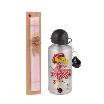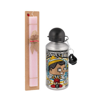 Garfield, Πασχαλινή Λαμπάδα με παγούρι μεταλλικό Ασημένιο αλουμινίου (500ml) & κερί αρωματικό πλακέ (30cm) (ΡΟΖ)