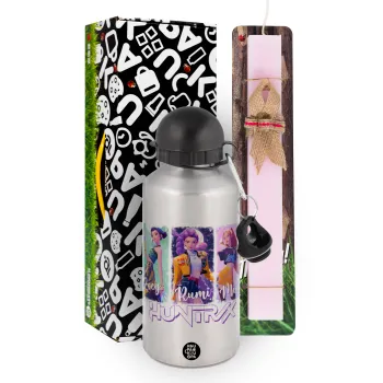 HUNTR/X K-pop girl group, Πασχαλινή Λαμπάδα με παγούρι μεταλλικό Ασημένιο αλουμινίου (500ml) & κερί αρωματικό πλακέ (30cm) (ΡΟΖ)