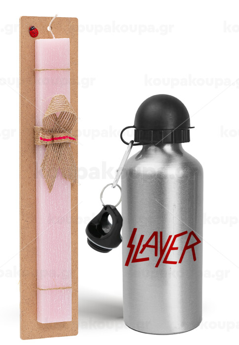 Slayer, Πασχαλινή Λαμπάδα με παγούρι μεταλλικό Ασημένιο αλουμινίου (500ml) & κερί αρωματικό πλακέ (30cm) (ΡΟΖ)