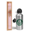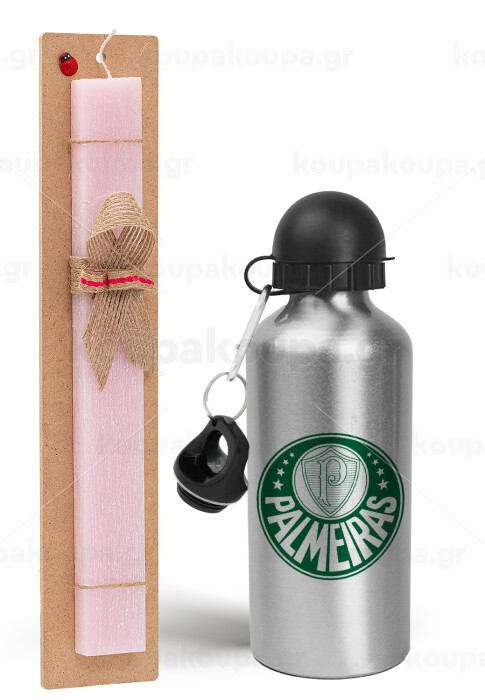 Palmeiras, Πασχαλινή Λαμπάδα με παγούρι μεταλλικό Ασημένιο αλουμινίου (500ml) & κερί αρωματικό πλακέ (30cm) (ΡΟΖ)