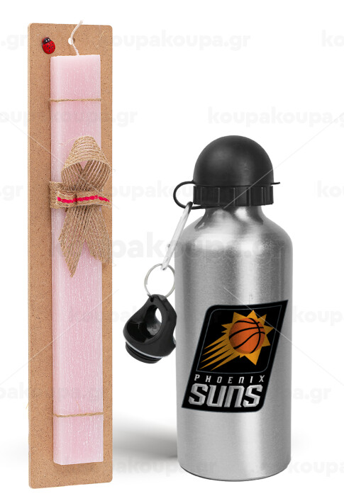Phoenix Suns, Πασχαλινή Λαμπάδα με παγούρι μεταλλικό Ασημένιο αλουμινίου (500ml) & κερί αρωματικό πλακέ (30cm) (ΡΟΖ)