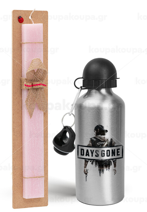 Day's Gone, Πασχαλινή Λαμπάδα με παγούρι μεταλλικό Ασημένιο αλουμινίου (500ml) & κερί αρωματικό πλακέ (30cm) (ΡΟΖ)