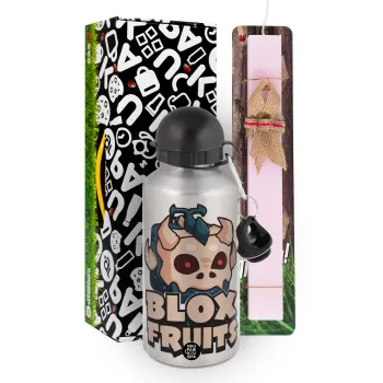 Roblox Blox Fruits, Πασχαλινή Λαμπάδα με παγούρι μεταλλικό Ασημένιο αλουμινίου (500ml) & κερί αρωματικό πλακέ (30cm) (ΡΟΖ)
