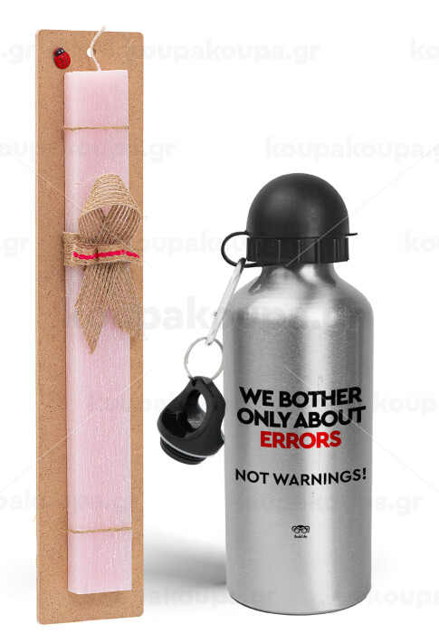 We bother only about errors, not warnings, Πασχαλινή Λαμπάδα με παγούρι μεταλλικό Ασημένιο αλουμινίου (500ml) & κερί αρωματικό πλακέ (30cm) (ΡΟΖ)