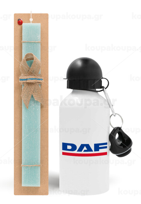 DAF, Πασχαλινή Λαμπάδα με παγούρι μεταλλικό αλουμινίου (500ml) & λαμπάδα αρωματική πλακέ (30cm) (ΤΙΡΚΟΥΑΖ)