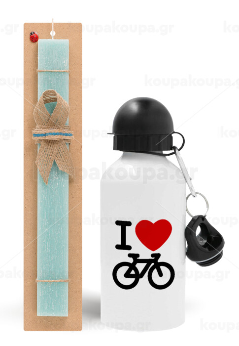 I love Bike, Πασχαλινή Λαμπάδα με παγούρι μεταλλικό αλουμινίου (500ml) & λαμπάδα αρωματική πλακέ (30cm) (ΤΙΡΚΟΥΑΖ)