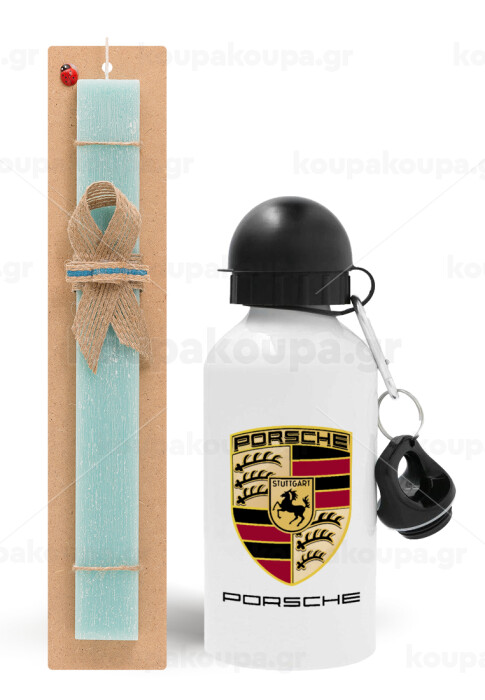 Porsche, Πασχαλινή Λαμπάδα με παγούρι μεταλλικό αλουμινίου (500ml) & λαμπάδα αρωματική πλακέ (30cm) (ΤΙΡΚΟΥΑΖ)