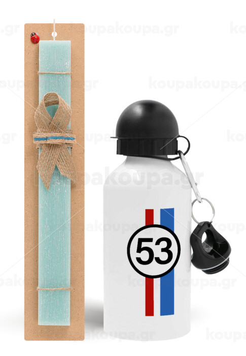 VW Herbie 53, Πασχαλινή Λαμπάδα με παγούρι μεταλλικό αλουμινίου (500ml) & λαμπάδα αρωματική πλακέ (30cm) (ΤΙΡΚΟΥΑΖ)