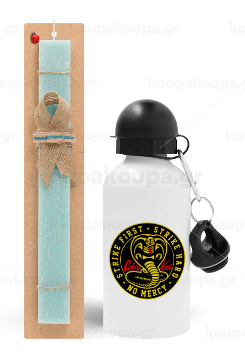 cobra kai strike first dojo, Πασχαλινή Λαμπάδα με παγούρι μεταλλικό αλουμινίου (500ml) & λαμπάδα αρωματική πλακέ (30cm) (ΤΙΡΚΟΥΑΖ)